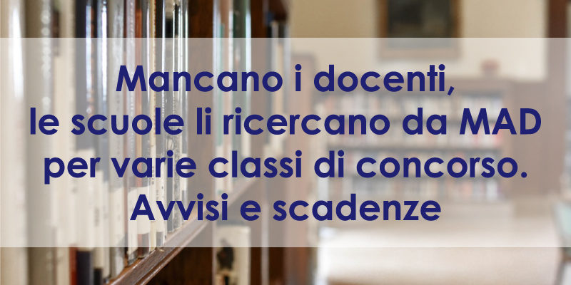 Mancano i docenti, le scuole li ricercano da MAD per varie classi di concorso. Avvisi e scadenze